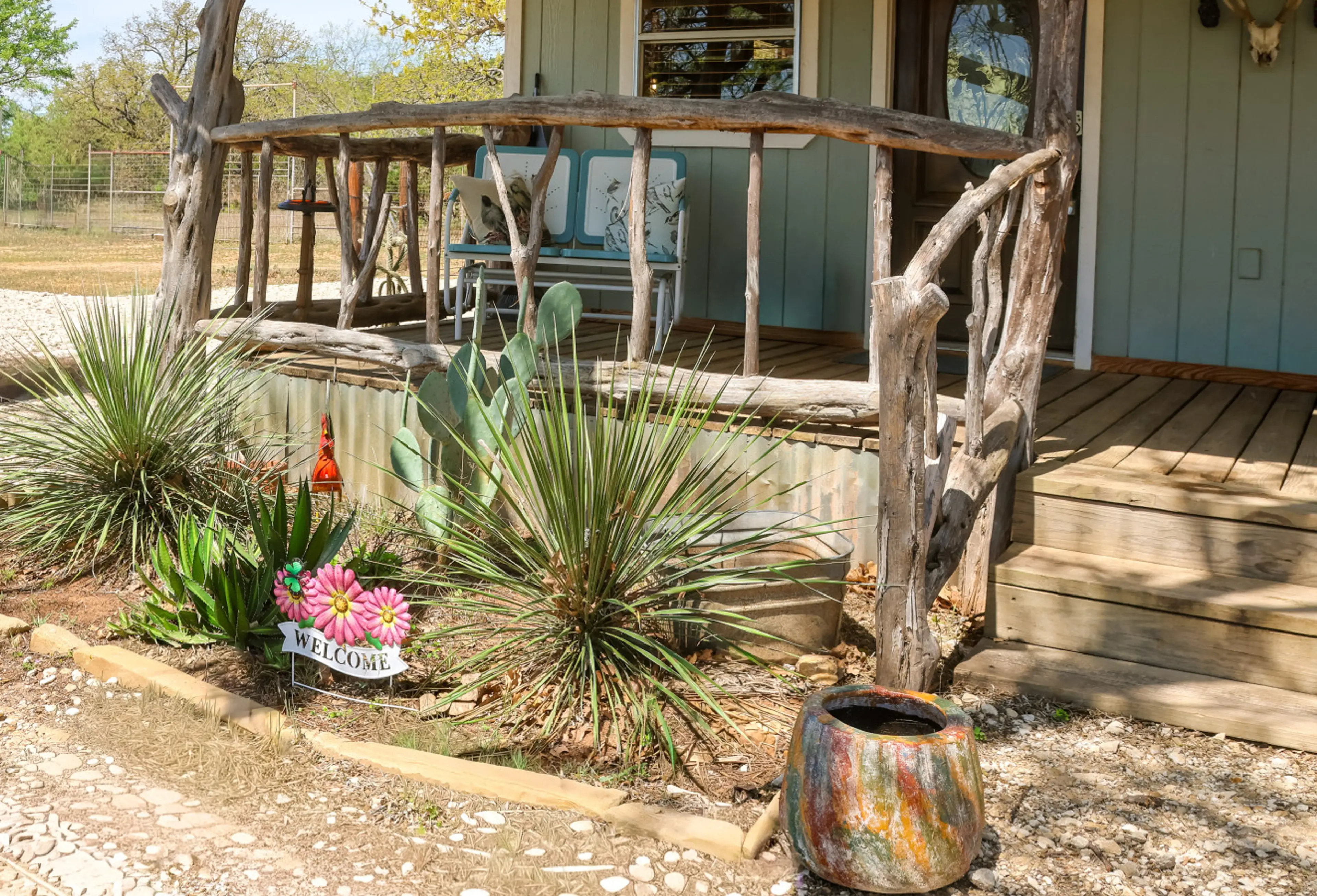 Its beautiful. They have thought of everything you might need & then some. Loved watching the exotic animals & the peaceful surroundings. The cabin feels like home. I love the "Andi Sloan" sayings! The cookies were delicious. They even sent messages of love day of funeral. John & Karen are very special people. You can tell how much they love people & the area. Itll be the best vacation every. They also have deer hunts & San Saba has unique stores. Absolutely love San Saba. Wish I coild upload more pics.